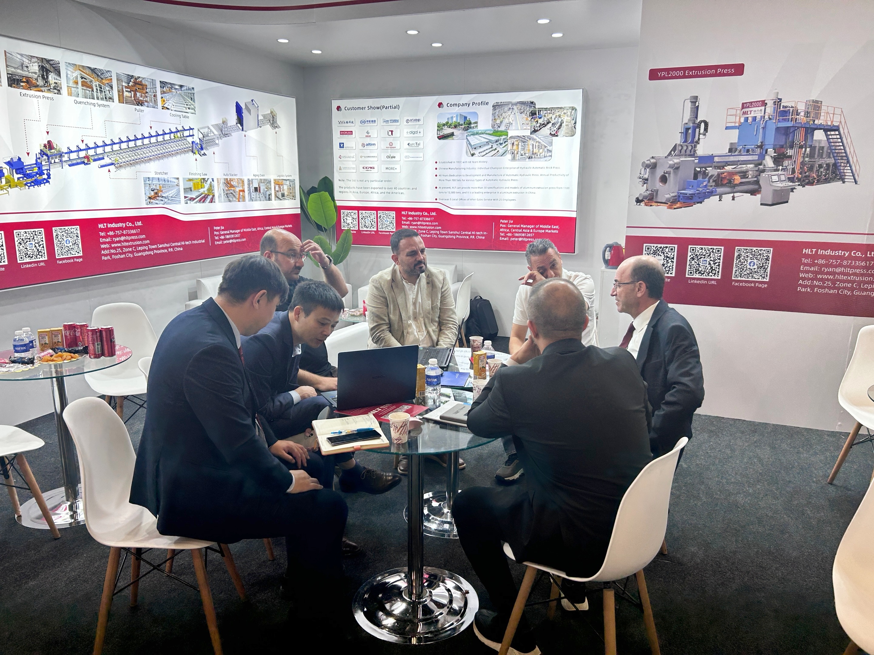 作为本次首展的联合赞助商,恒力泰精准洞察印度市场需求的关键痛点,于P-36展位打造了沉浸式展示空间。针对当地客户颇为关注的“中小吨位设备需求集中”“小批量多规格生产”等生产需求,推出多款专为建筑、光伏型材生产场景设计的高适配性设备,可精准契合实际生产需求,助力企业达成降本增效的目标。此外,恒力泰还展示了全新一代挤压机,及该设备在客户现场的使用视频,让全球行业同仁能够直观感受该设备在产能优化、低碳环保方面的显著优势。